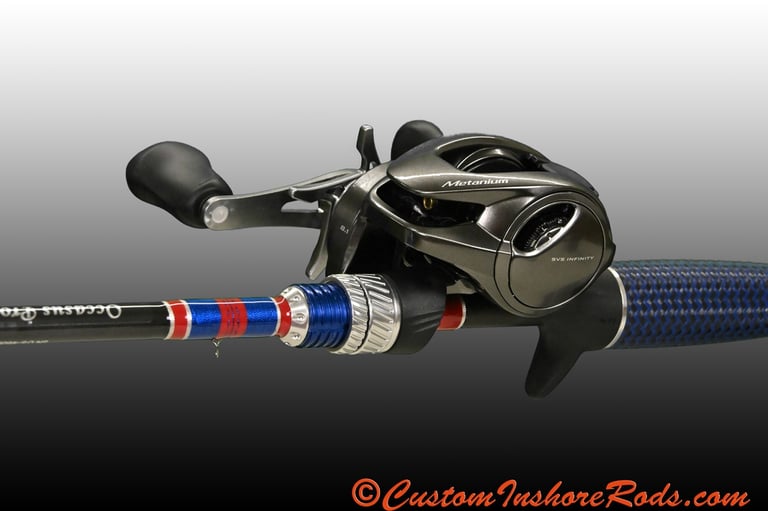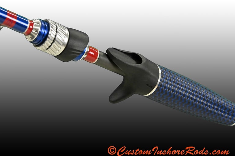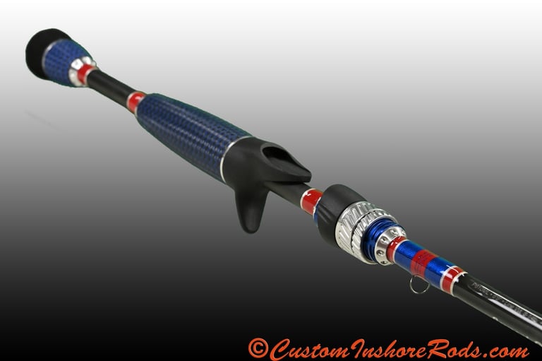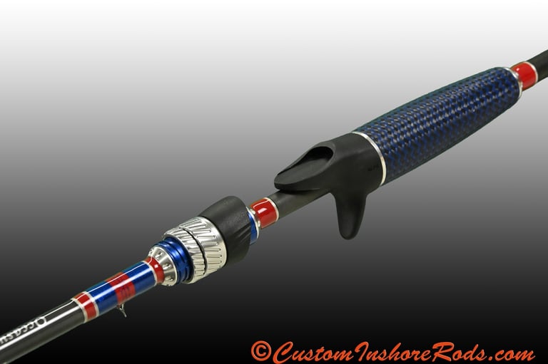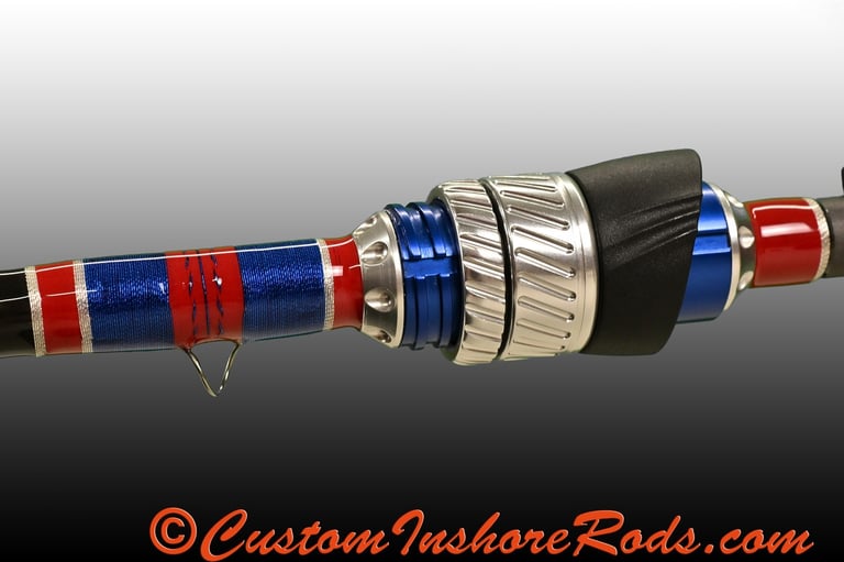 Elevate your inshore trout and redfish fishing experience with the Coastal Patriot, a handcrafted custom rod built on a premium high-modulus blank designed to deliver exceptional sensitivity, strength, and responsiveness. Featuring medium-light power (8–14 lb line; 1/8–5/8 oz lures) and a crisp fast action, the versatile 6'9" length makes this rod an outstanding all-around performer for working soft plastics, light jig heads, paddle tails, and topwaters when targeting speckled trout and redfish.
